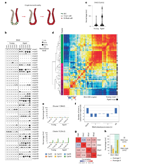 近年来,表观遗传时钟的建立证实了DNA甲基化变化与生理年龄之间的强关联,且癌症组织常呈现显着的表观遗传年龄加速。然而,驱动衰老相关DNA甲基化漂变的具体分子机制,特别是其如何在正常组织中起源、积累并最终促进肿瘤发生,仍不明确。与此同时,肠道干细胞驱动的上皮高速更新、隐窝的克隆性扩张及分裂等组织特性,为研究年龄依赖性表观遗传变化的细胞动力学提供了独特模型。